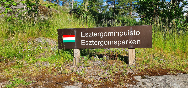 A park névtábláját az utca mentén, a szikla keleti végénél 2004. augusztus 29-én leplezték le a testvérvárosi kapcsolatok fennállásának, valamint az espoo-i Finn-Magyar Társaság megalapításának 30 évfordulója alkalmából.